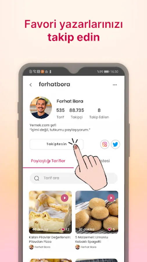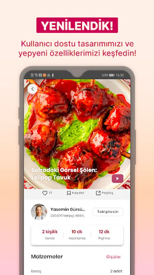- Lezzetine güvendiğiniz özel tariflerinizi kendi isminizle yayınlayabilme, diğer kullanıcılarla paylaşabilme