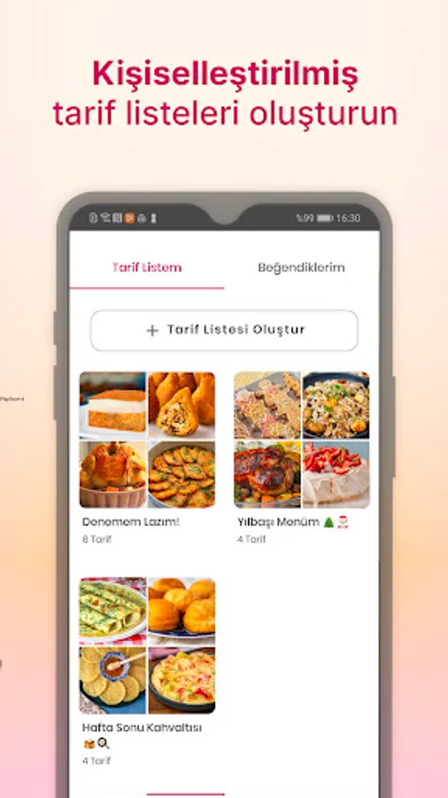 - En sevdiğiniz yemeklere göre kişiselleştirilmiş, her gün sadece size özel yemek tarifi menüleri, “bugün ne yapsam?” sorunuza cevap olacak, denenmiş, fotoğraflı, videolu tarifler