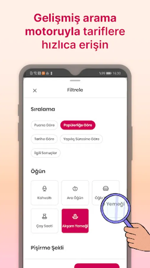 - Detaylı tarif arama özelliği ile binlerce yemek tarifi arasından istediğiniz öğüne, pişirme süresine ve pişirme yöntemine göre size özel tarifi arayabilme