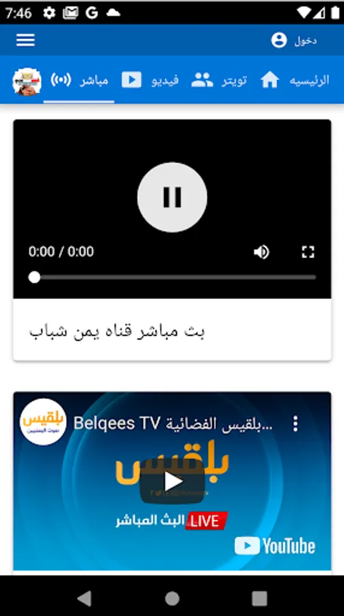 And the icon for the live broadcast is for Yemeni and other Arab channels, such as Belqis channel, Yemen Shabab channel, Al-Mahariya channel, Yemen Today channel, Al-Jazeera channel and other channels.