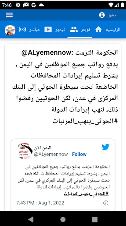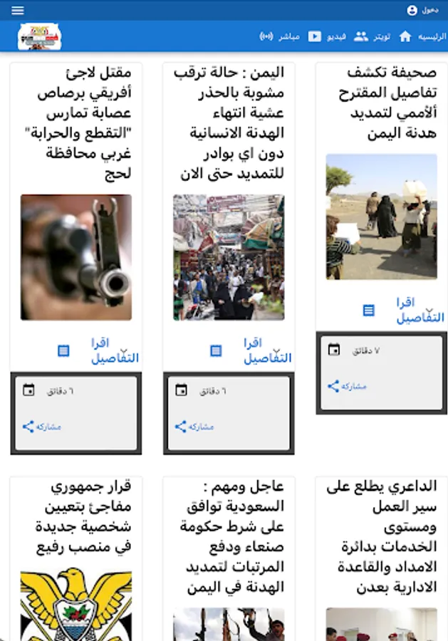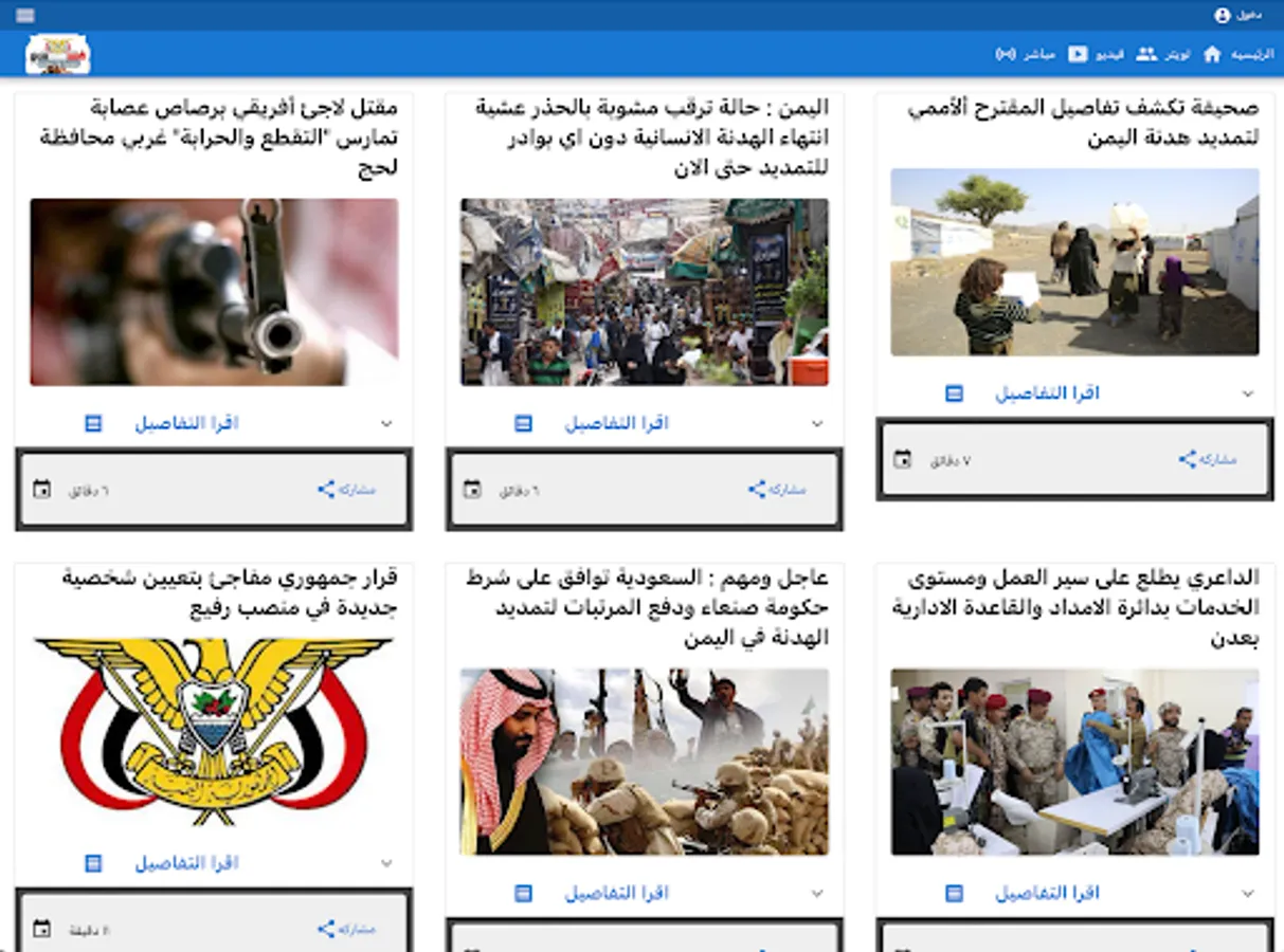 And the icon of the videos, the most popular YouTube channels have been selected by Yemeni users, and the videos are automatically fetched via the rss service