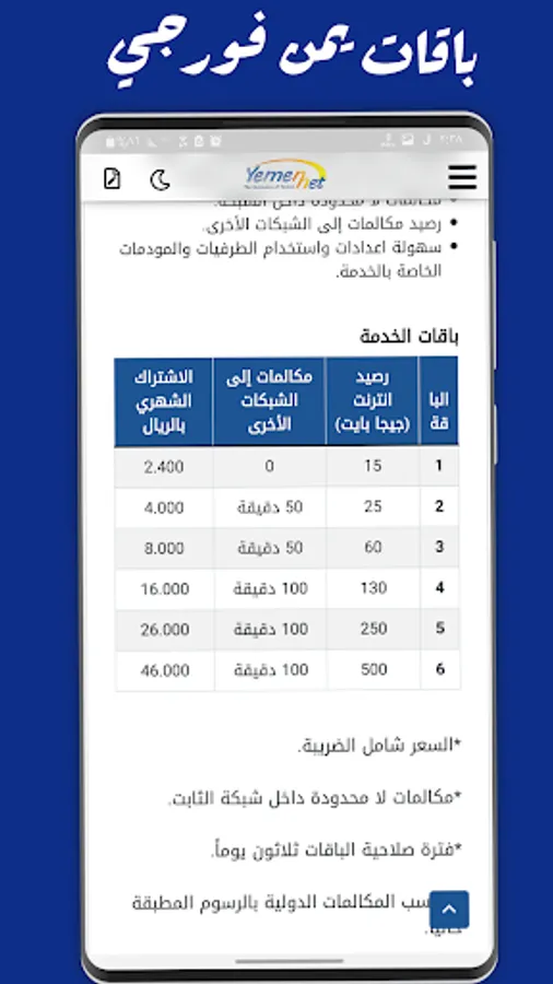 8. Offers and packages at Yemeni Telecommunication corp.'s.