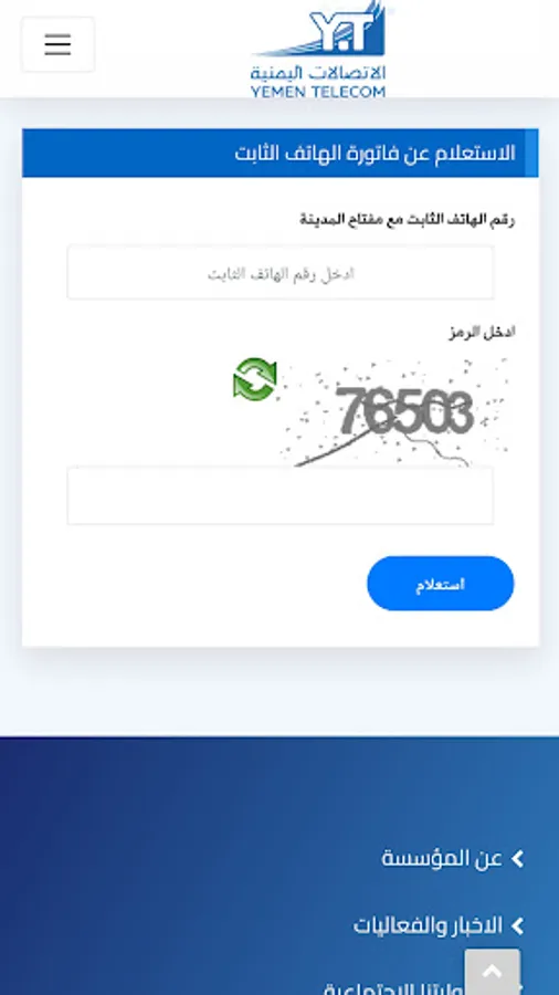 1- Yemen Net ADSL (balance inquiry, scratch card payment)