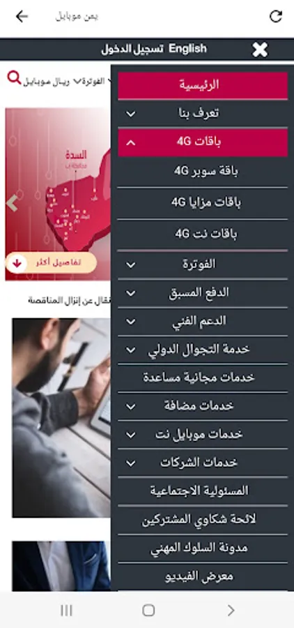 Directory of Yemeni telecom companies services.