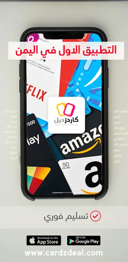✅يتواجد في التطبيق مجموعة واسعة من البطائق الالكترونية مثل جوجل بلاي ايتونز و بلايستيشن وغيرها بالاضافة الى بطائق الترفيه مثل نتفلكس وغيرها الكثير