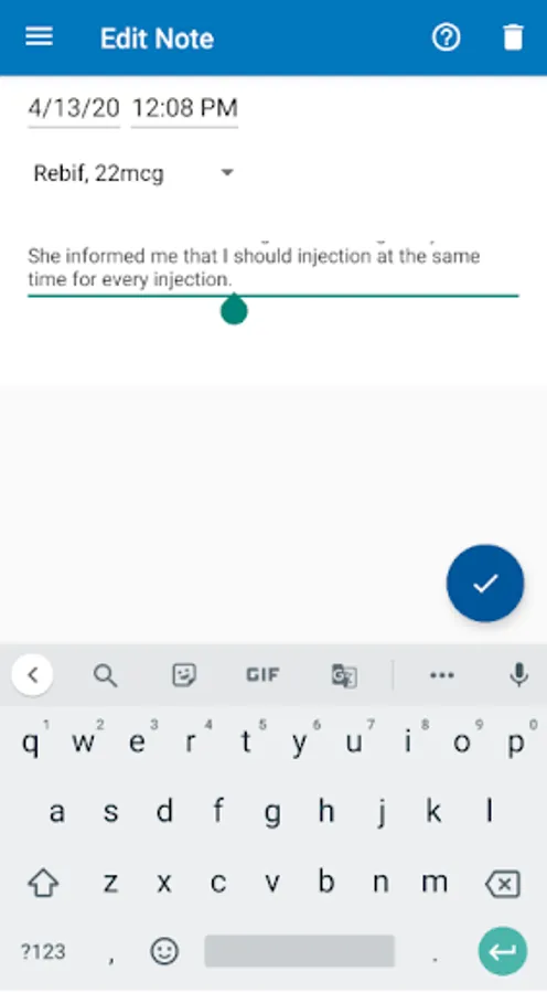 This simple app will help you keep track of all your injections on the go. It will remind you when it's time to inject, and show you where you recently injected so you can avoid building up scar tissue from injecting the same spot too often.