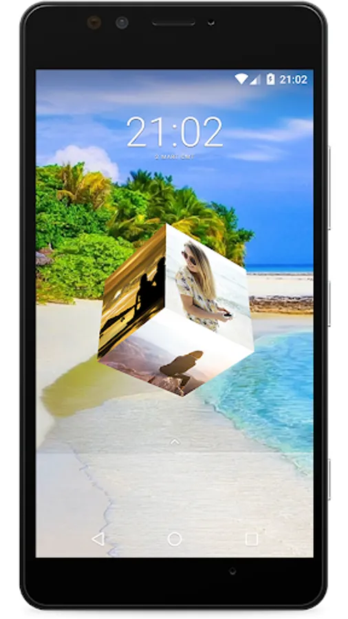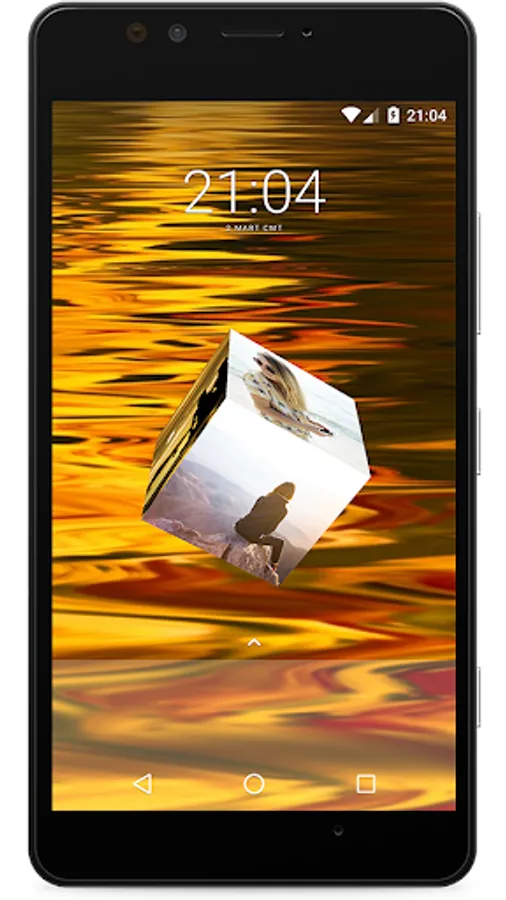 The 3D Cube Live Wallpaper app allows you to add your favorite photos to the faces of the cube and rotates smoothly in the background.