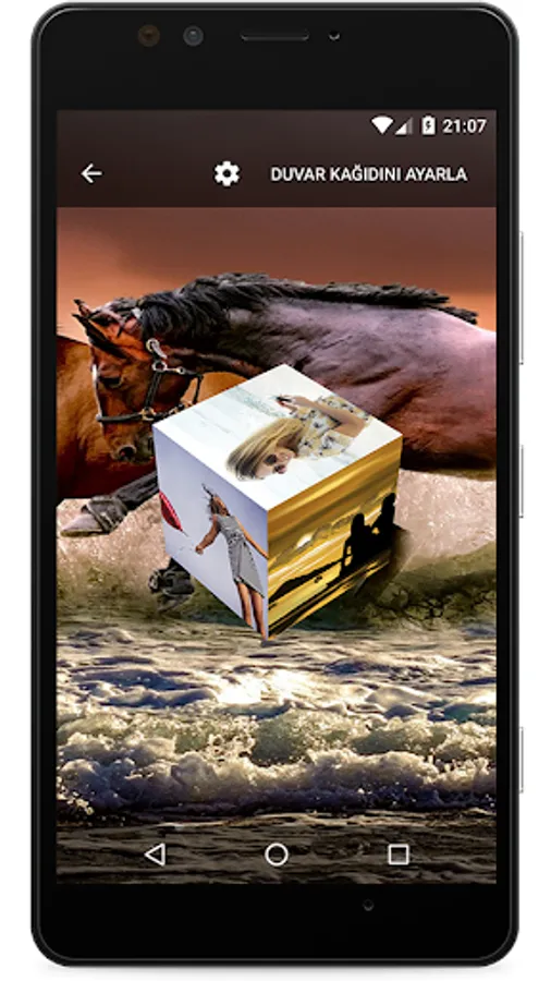 You can customize the cube size, rotation speed if you want. The 3D Cube Live Wallpaper app offers a rotating 3d cube showing pictures and photos from the gallery.