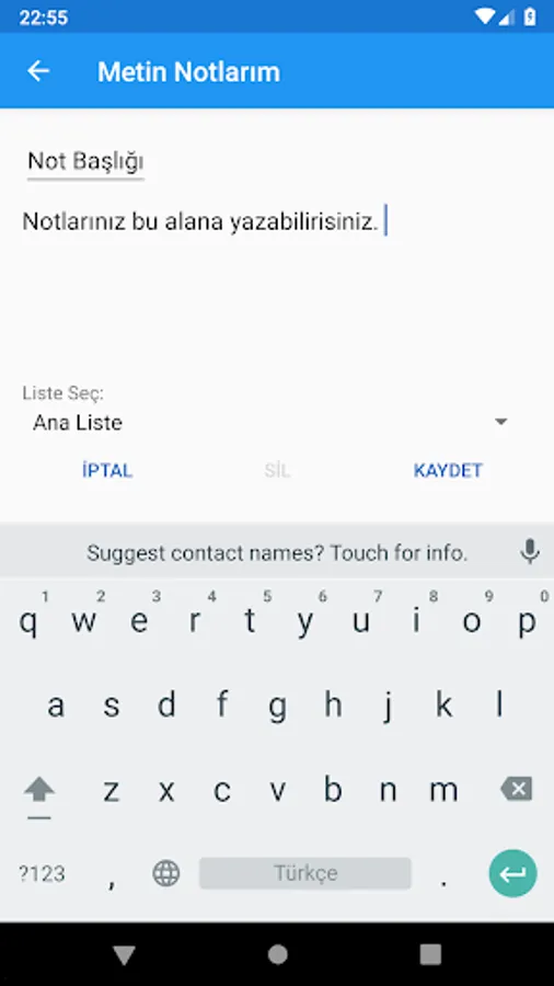 You can create notes very conveniently. It makes your life easier by taking note of special days, valentine's day and love quotes, anniversary dates, birthdays. Automatically save. There is no need to press the record button. You can share your favorite notes on social networks.