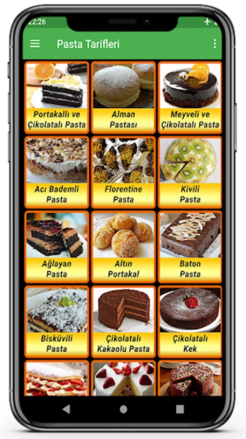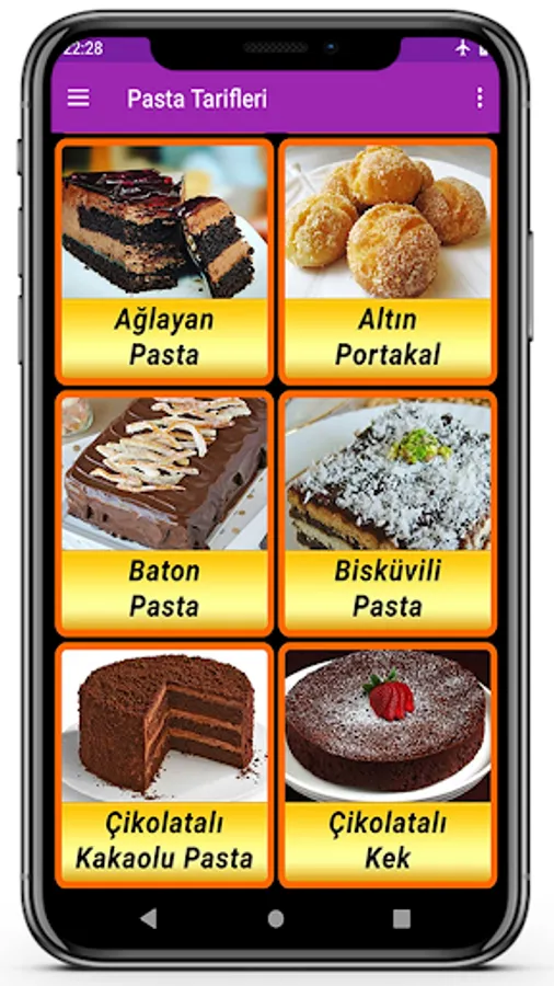 Within the application; Bitter Almond Cake, Crying Cake, German Cake, Golden Orange, Baton Cake, Chocolate Cocoa Cake, Strawberry Puff Pastry, Birthday Cake, Ice Cream Cake, Eclair Cake Recipe, Apple Cookie Recipe, Hazelnut Cake, Cupcake Cake, Florentine Cake, French Cake , Rose Cake, Halley Cake, Coconut Cake, Wet Cake, Spinach Cake, Imam Yellow Recipe, Fig Cake, Snowball Cake, Cat's Tongue Cake, Cherry Cake, Kiwi Cake, Tiramisu Recipe, Cream Cheese Cake, Labne Cake, Fruit Cake, Mole Cake, Domed Cake, Mosaic Cake, Banana Cake, Sultan's Delight Recipe, Sponge Cake Recipe, Pavlova Cake Recipe, Orange Cake, Pramit Cake, Pudding Cake, Red Velvet Cake, Roll Cake, Milky Semolina Dessert, Sharlot Cake, Peach Sauce You can prepare Cake, Confectionery, Cherry Jam Cake, Cherry Cake, easily and quickly thanks to this application.