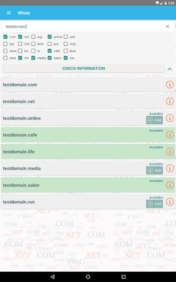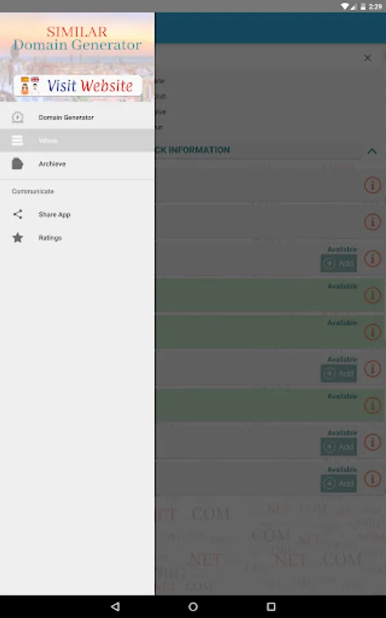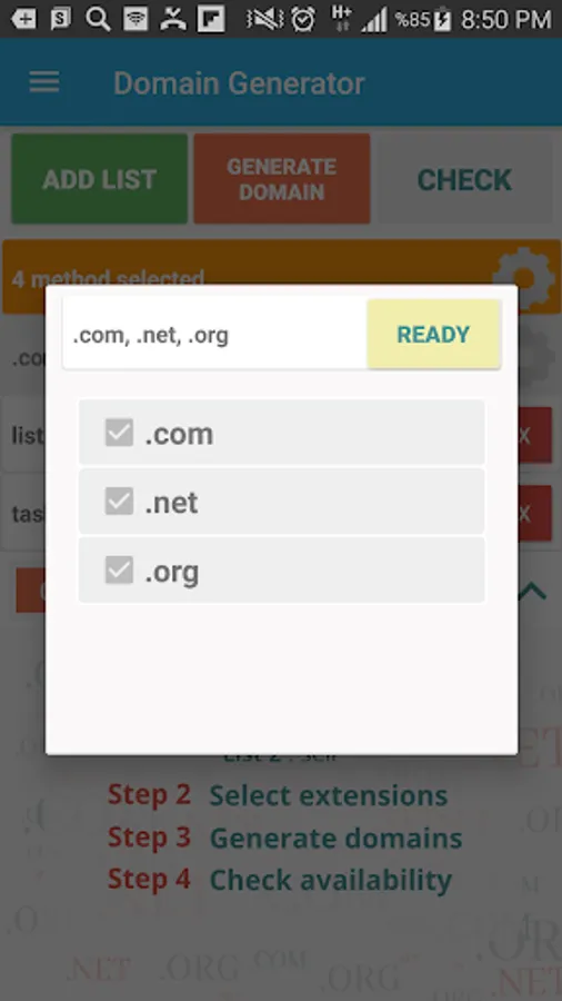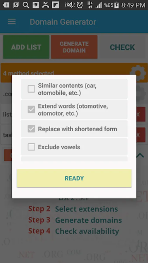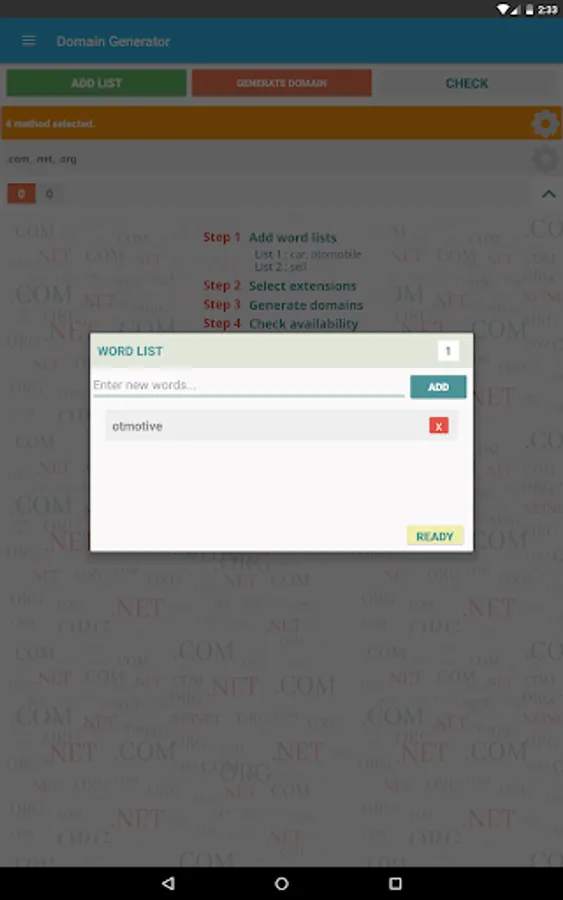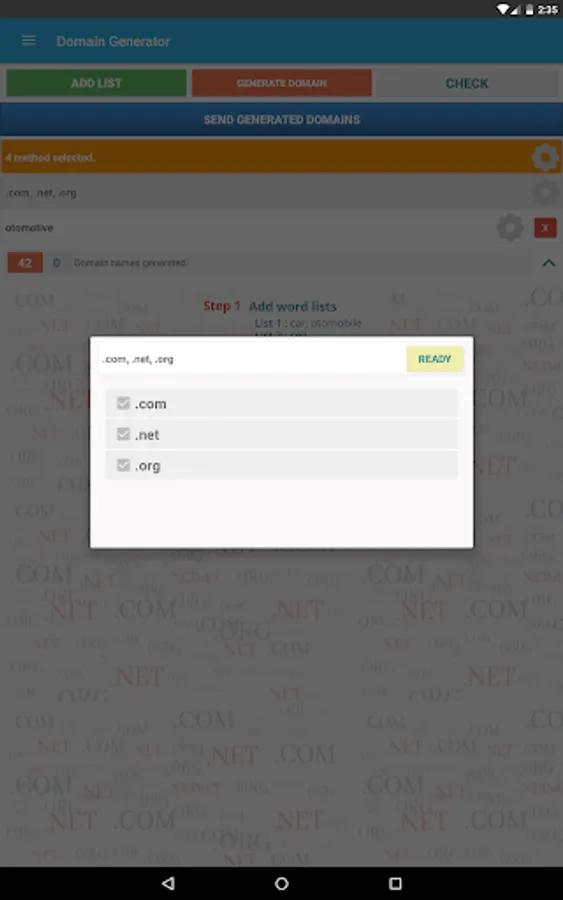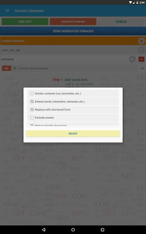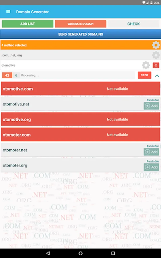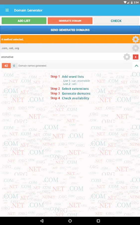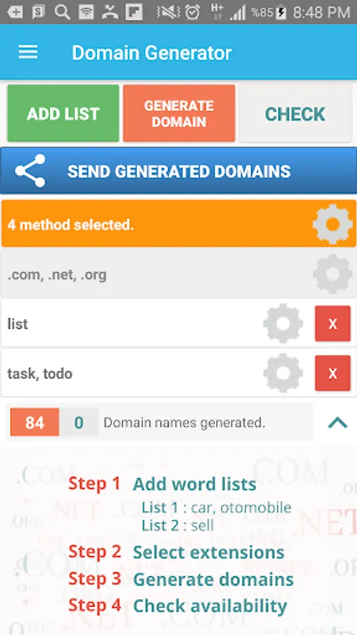 - Send generated domains via sms, email etc.