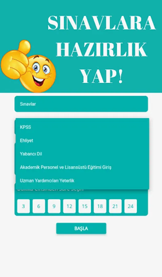 You can solve tests in many different categories such as KPSS, Driver's License exam, YDS, Assistant Specialist Qualification, Academic Staff and Graduate Education Entrance exams.