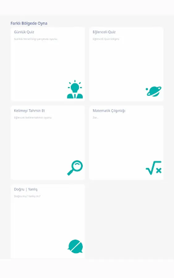 Quizilla offers a unique experience for online quiz game lovers. With Quizilla, you can compete with your opponents, take your place on the Leaderboards, test your intelligence with the word guessing game, test your knowledge with the correct or incorrect section, encounter your friends or random players with the 1vs1 section, experience the team spirit with the group quiz section and create codes in special rooms. You can organize private competitions with your friends.