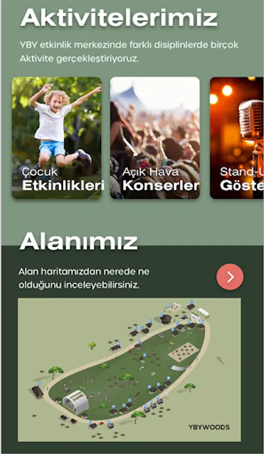 YBY Woods has been offering cultural, artistic and fun-filled activities in the open air under the blue sky on its 20-decare area in Kemerburgaz City Forest since 2021. You can get information about the events organized through the application and buy event tickets.
