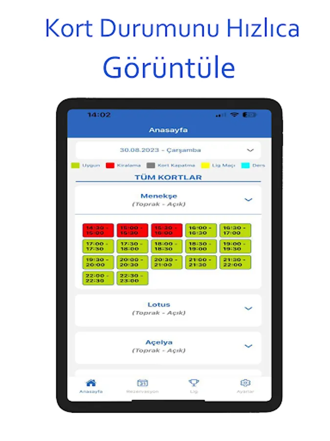 Online Reservation: Now it's much easier to book a court! You can see the available courts for the date and time you want and complete your reservation immediately.