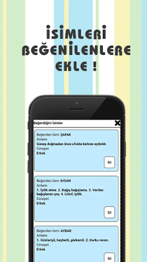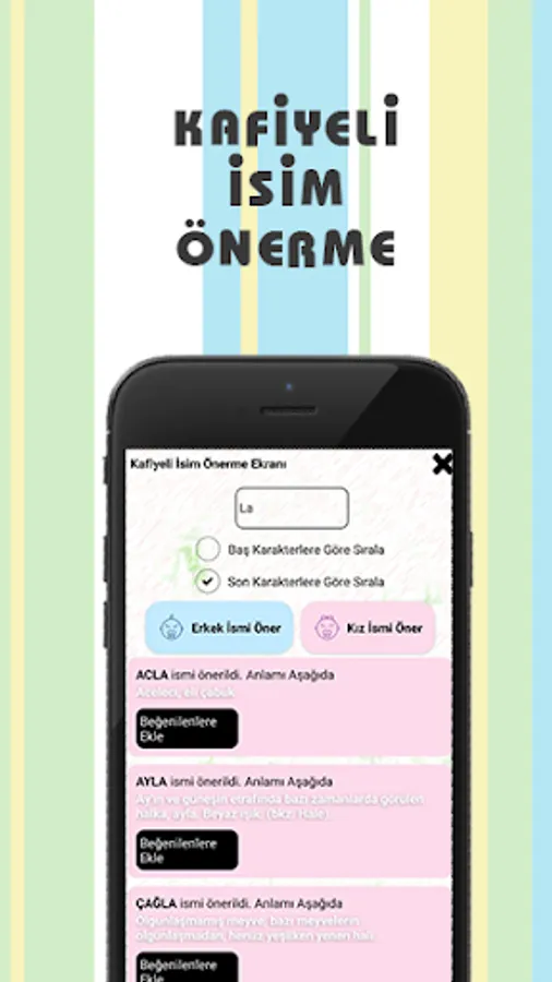 It contains many features such as reviewing by recording the favorite names.