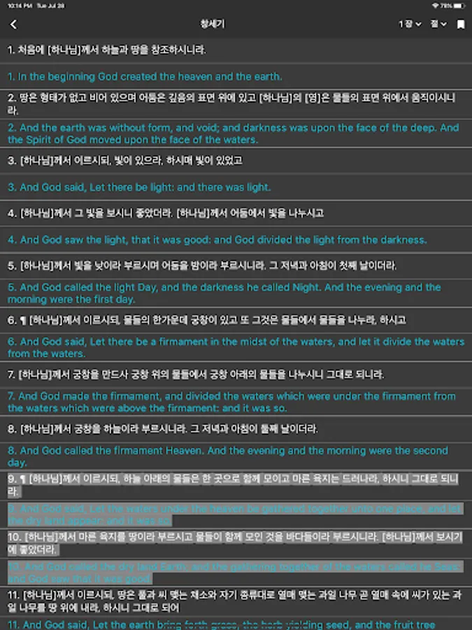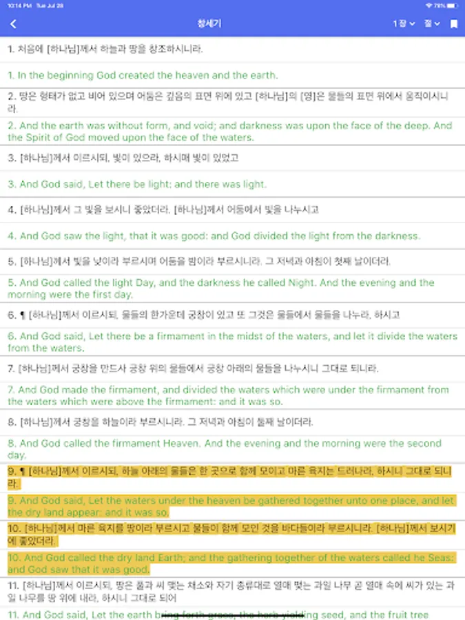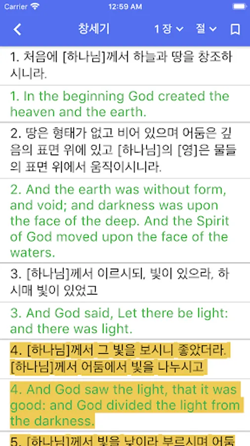 -Contrast view viewing function (KJV Korean, KJV English, Bible translation)