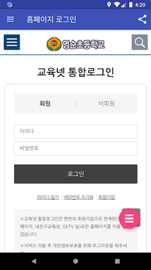 It is a dedicated app that works with Young Soon Elementary School homepage.