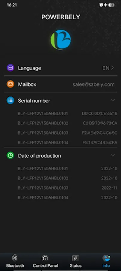The POWERBELY intelligent battery management system can monitor the battery status through Bluetooth connection, collect, store and process the information during battery operation in real time, exchange information with external devices, solve the key problems of the safety, ease of use and service life of the lithium battery system, extend the service life of the battery, and enhance the stability of the battery after grouping.