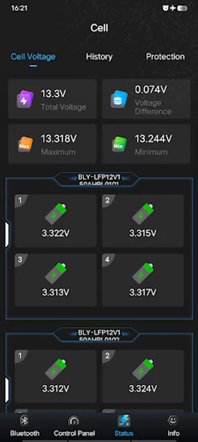 3. Comparison of each data of the cells and voltage difference. The maximum voltage and minimum voltage of the series or parallel battery packs, the maximum voltage and minimum voltage of the battery cells during the monitoring of a single battery. And display of cell balancing status.