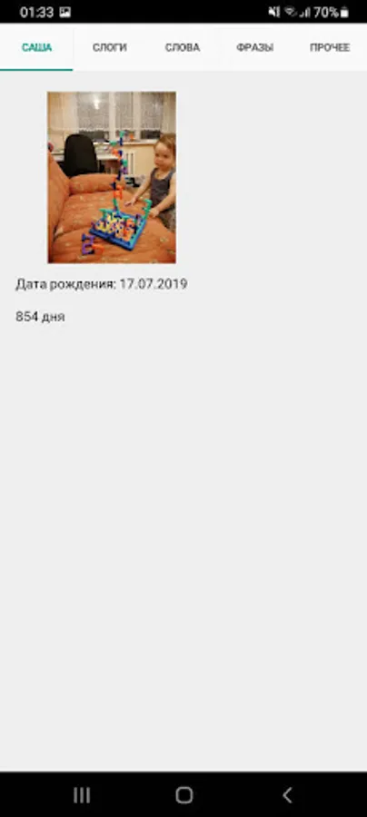 - a kind of child development diary and album in one bottle (syllables, words, phrases);