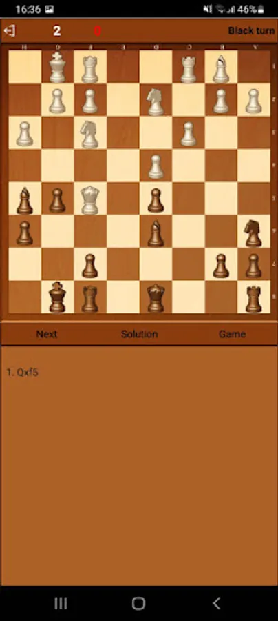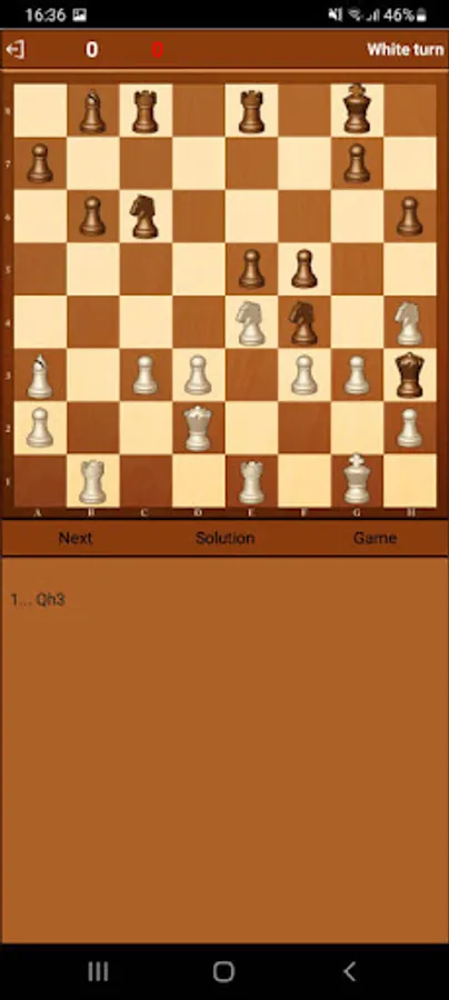In this application you are invited to solve tactics and find the strongest moves in games started with Scandinavian Defense. You can see a solution of the puzzle, you can see a game in which the puzzle took place.