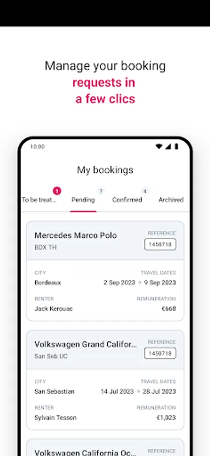 • Complete the vehicle handover with our digital rental contract on the Yescapa application