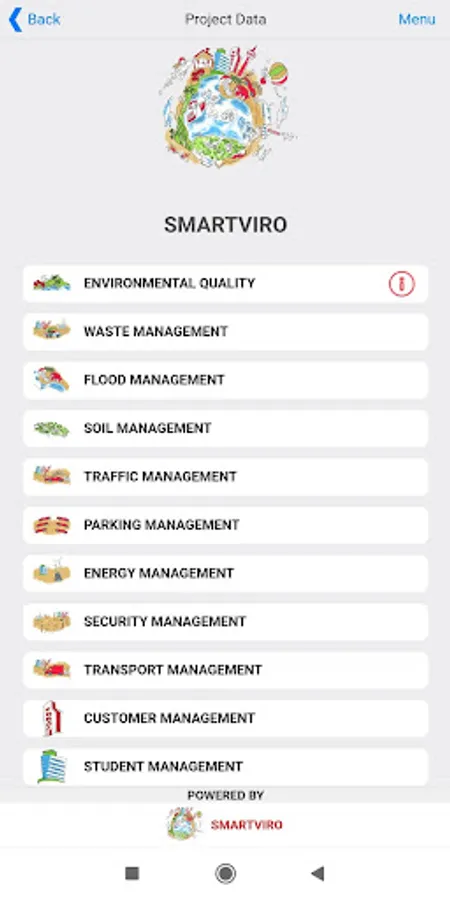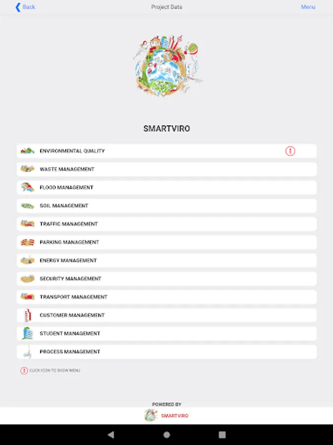 Smartviro App smart application cloud platform which provide as one stop gateway for IOT application pertaining to smart city, smart home, smart construction, smart industry, smart agriculture, smart school, smart retail and smart solution. The IOT application enable user of multiple disciplines to manage environmental quality, waste traffic, parking energy, security, flood and process for the big data to be embedded with electronics, software, sensors, actuators and network connectivity that enable integration of the physical world into computer based systems resulting in improved efficiency, effectiveness and economic benefit.