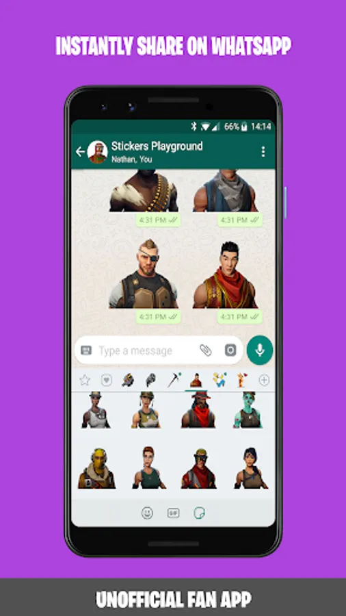 Instantly save your customized Fortnite Sticker Packs to WhatsApp Messenger.