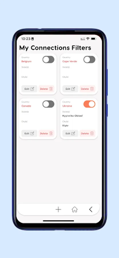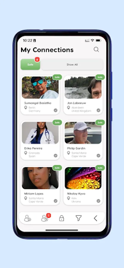 The app also comes with easy filtering so you can find people from certain countries or cities. With one push of a button you can see your connections and show them according to their status.