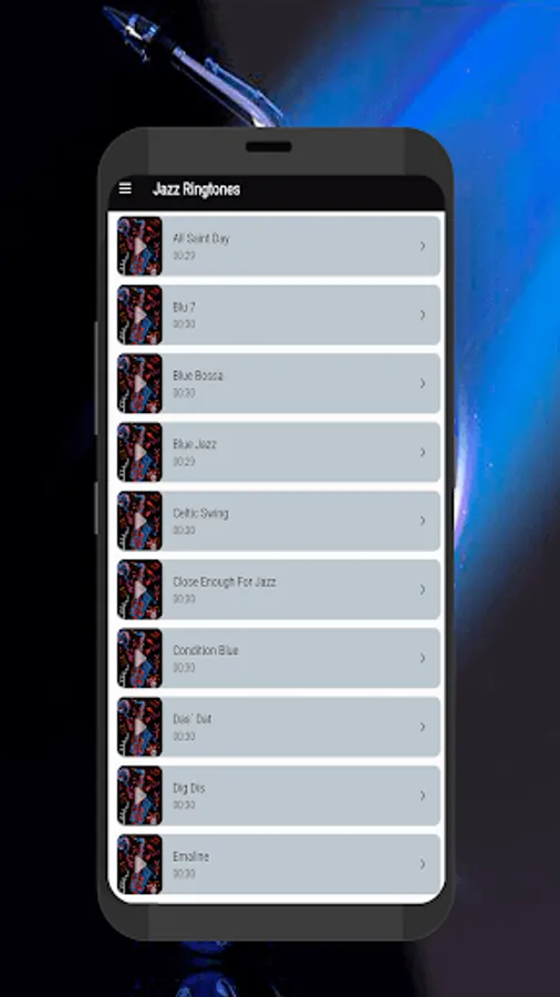 The best jazz music ringtones, in this application you can find jazz ringtones for Android phones, in the ringtone playlist you can listen to your favorite sounds, here you will find the best alarm sounds or old notification tones, popular sounds, this App is for you because here you will find the best free relaxing jazz sounds like: Blues Y Jazz Celtic Swing, Close Enough For Jazz, Everyday I Have the Blues, God Bles The Chid, Goodot Theme Jazz, In The Wee Small Hours Of The Morning , Gypsy Blue, In Your Own Sweet Way, among others.