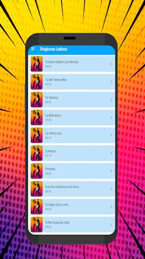 Download the best collection of short Latin music tones for the phone and set them as a ringtone or notification tone, the best romantic Latin tones for WhatsApp, Latin ringtones for the cell phone, contact tones, in this application of free molody tones, Strong Latin ringtones for free Android phone, you will find the best of modern Latin music ringtones, so stop searching on the internet for your favorite ringtones, here you can get a great variety of sounds, Latin music Ringtones, sounds of Latin music from the 70s 80s 90s, share this App with all your friends and family and start enjoying the best Latin ringtones.