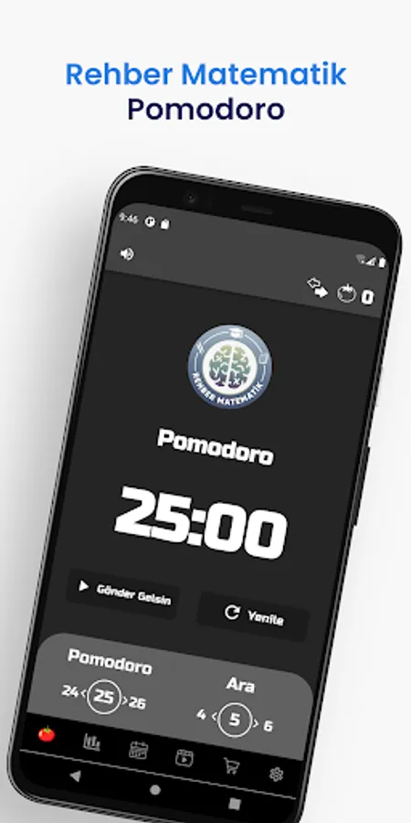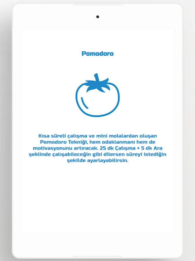 With the Pomodoro Application that we developed to increase both your focus and motivation during your study, you can set the duration as 25 minutes of Work + 5 minutes of Break, or you can customize the duration as you wish. Don't forget to take a long break (15min-30min) after four pomodoros. Incoming calls, notifications, mails and other