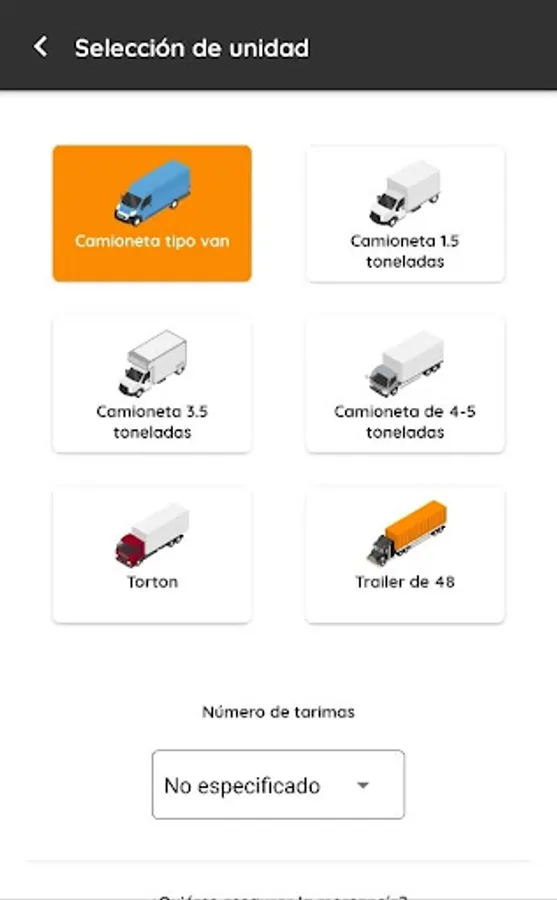 • Select the type of unit tailored to your needs to transport your cargo and give us the necessary specifications to move it in time and form.