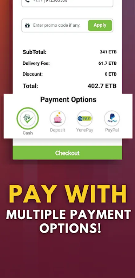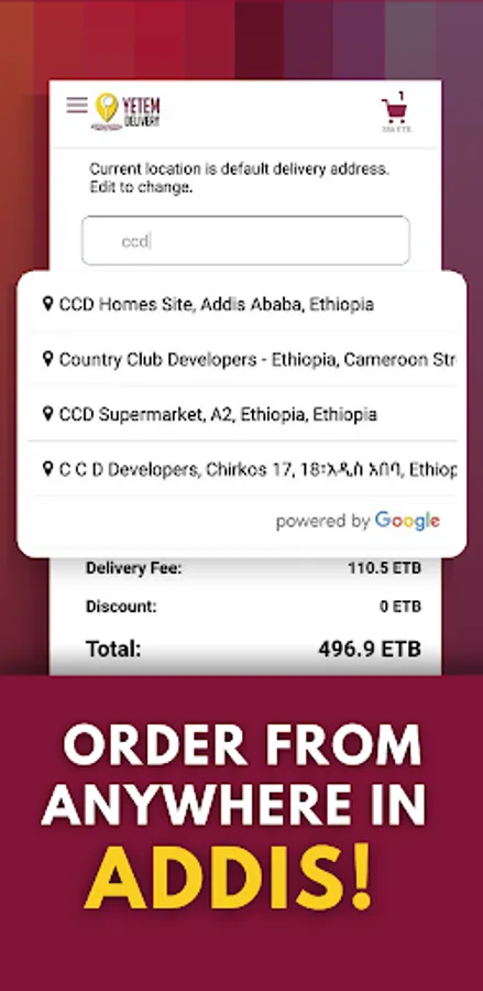 - delivering to anywhere in Addis with easy payment options & vouchers all at your finger tips. Your needs, done!