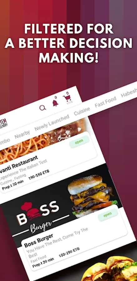 Restaurants -> Nearby, Cuisine, Fast Food, Fasting, Habesha, Pastry, Popular, Pocket Friendly.