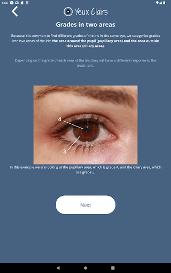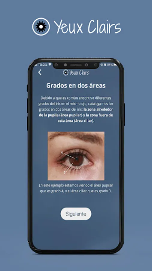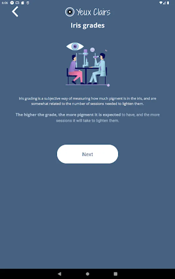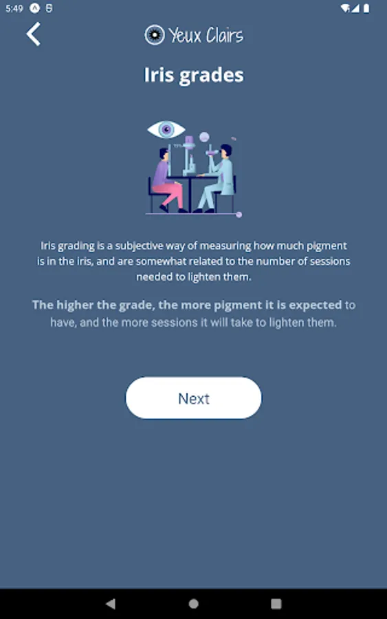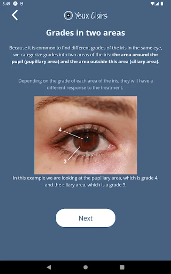 Take eye selfies with the official Yeux Clairs app! You can take pictures quickly, with the right lighting. It has an audio guide to take the best possible quality selfie and you can zoom in on the images taken. You can save and share the photos with whoever you want. Know the grades of pigmentation of the iris so you can evaluate your degree, and your progress in laser depigmentation!