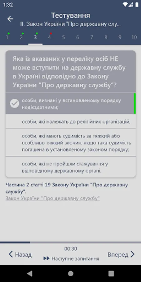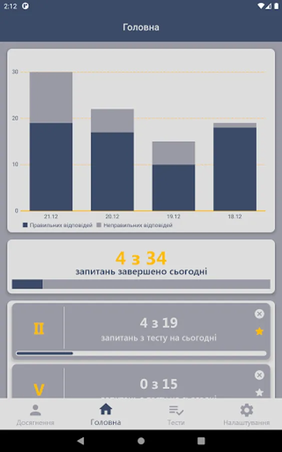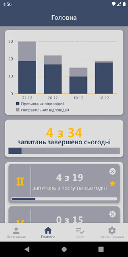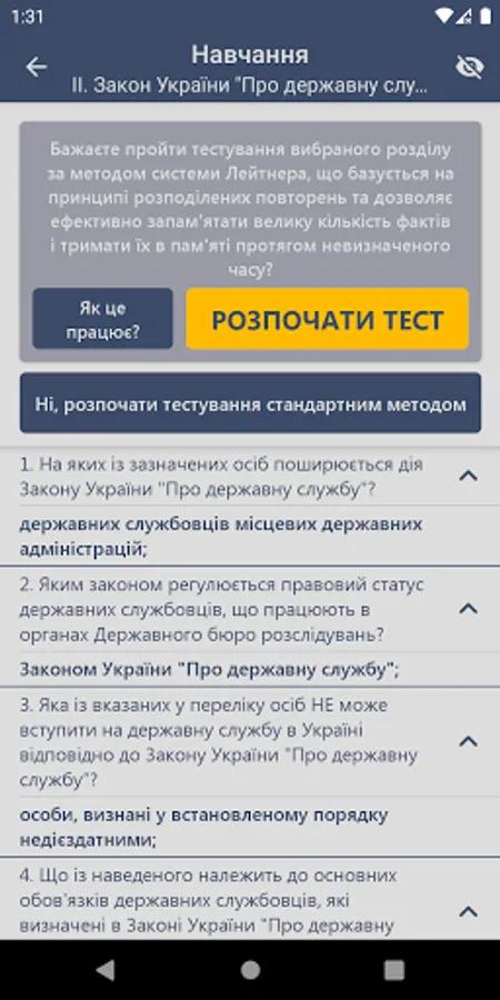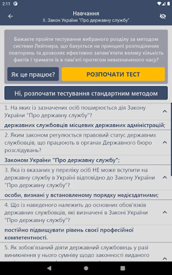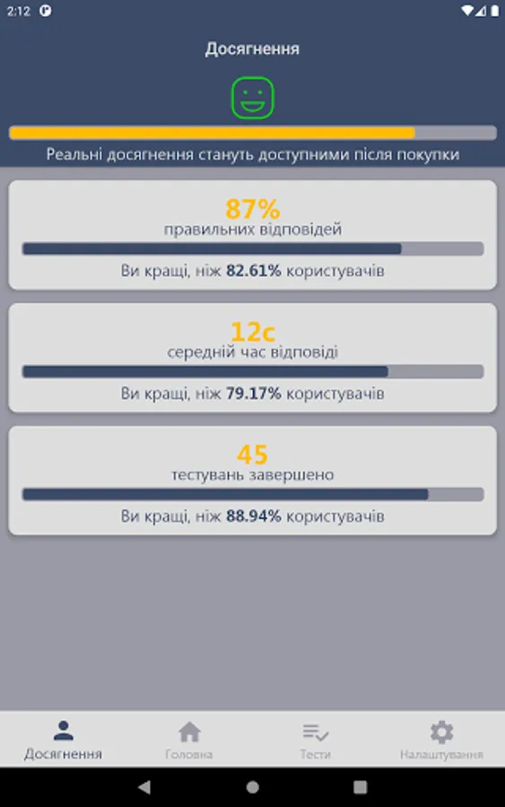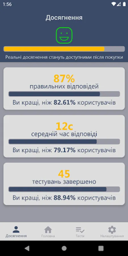 In this application, you can not only study the material and take tests, but also see a comparison of your results with the results of other users undergoing testing.