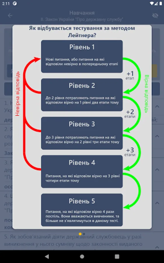 Effective study of questions is realized by the method of Leitner, which allows you to study and memorize the studied material indefinitely. This is achieved through more frequent repetition of questions by the user, in response to which he often makes mistakes.