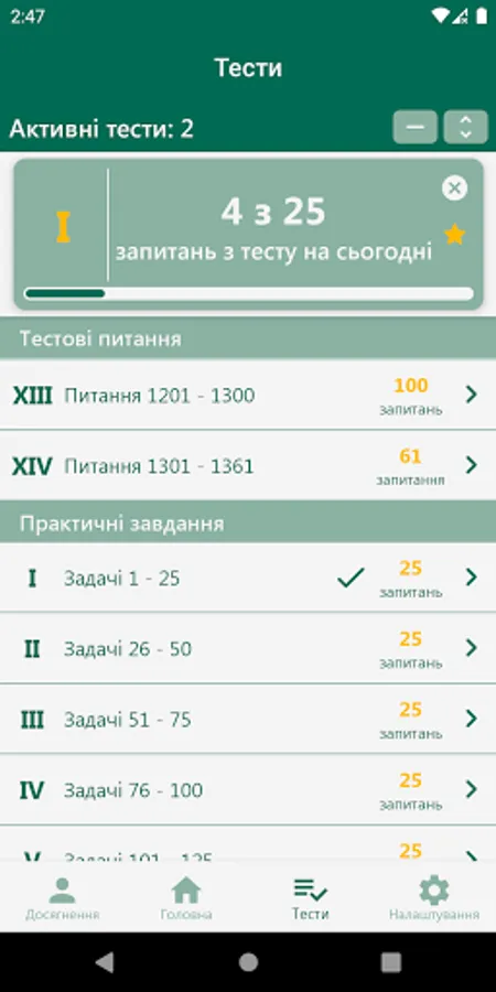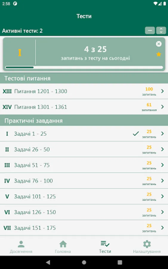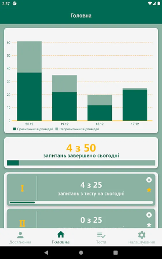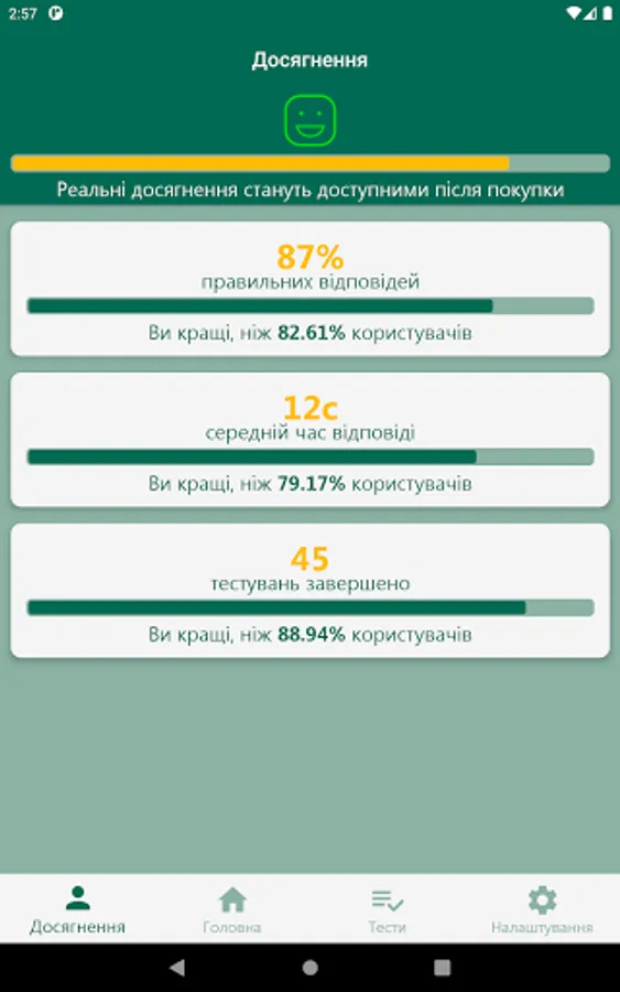 In this application, you can not only study the material and take tests, but also see a comparison of your results with the results of other users undergoing testing.