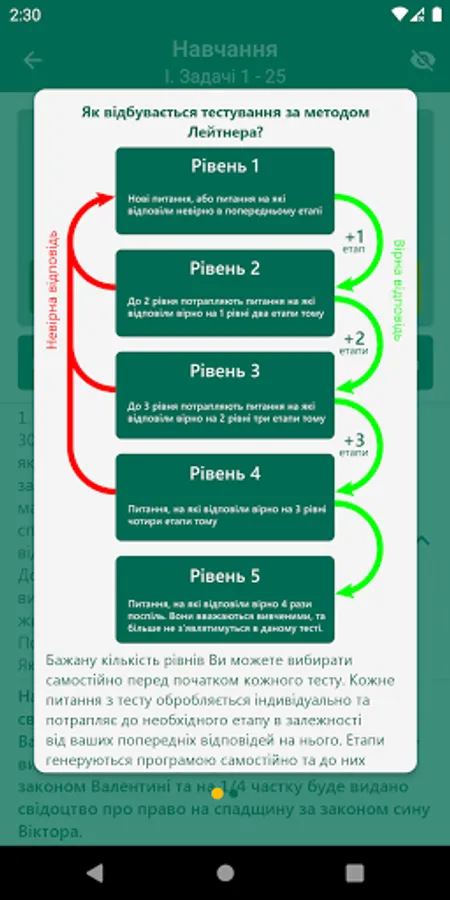 Effective study of questions is realized by the method of Leitner, which allows you to study and memorize the studied material indefinitely. This is achieved through more frequent repetition of questions by the user, in response to which he often makes mistakes.