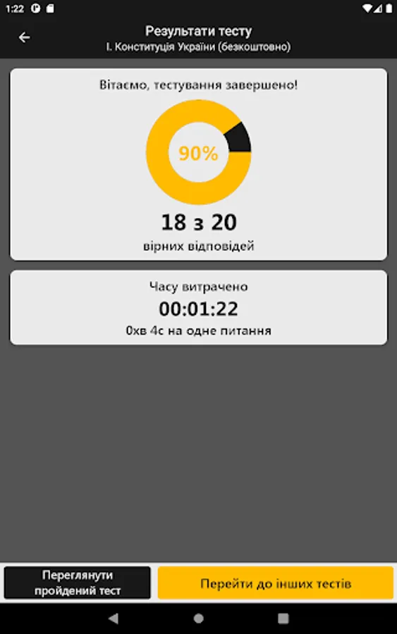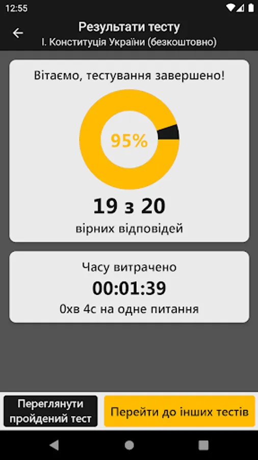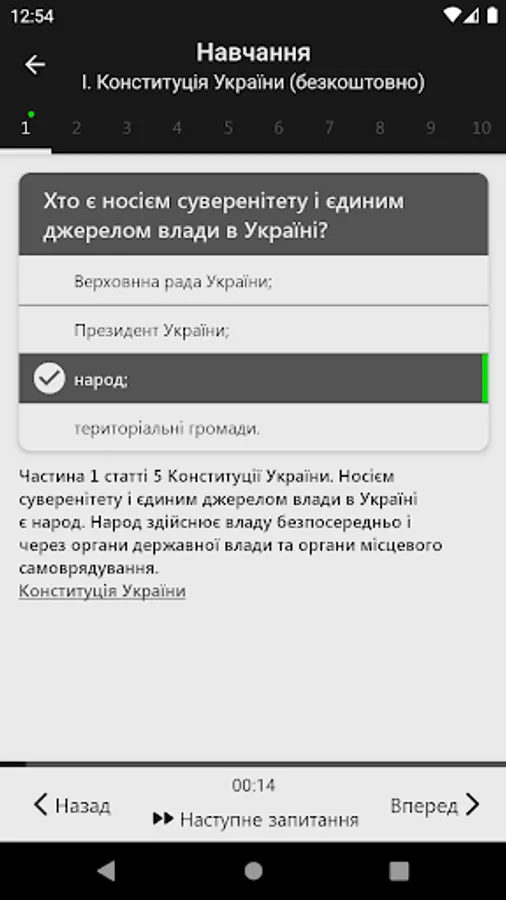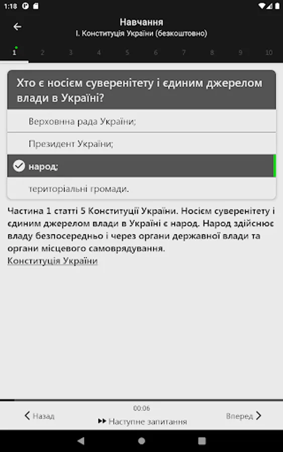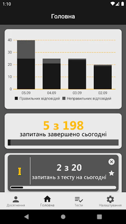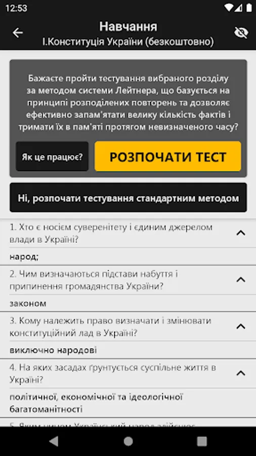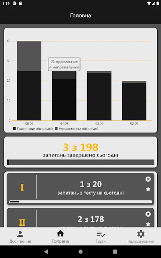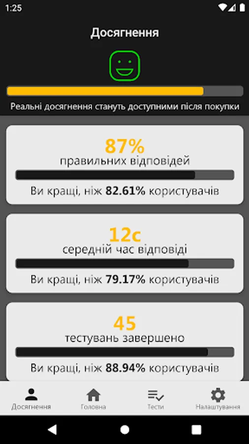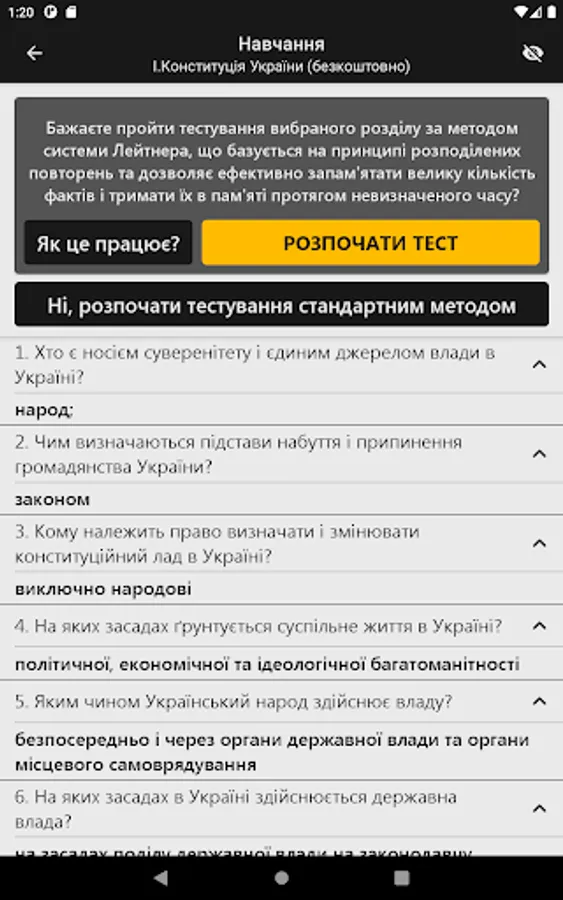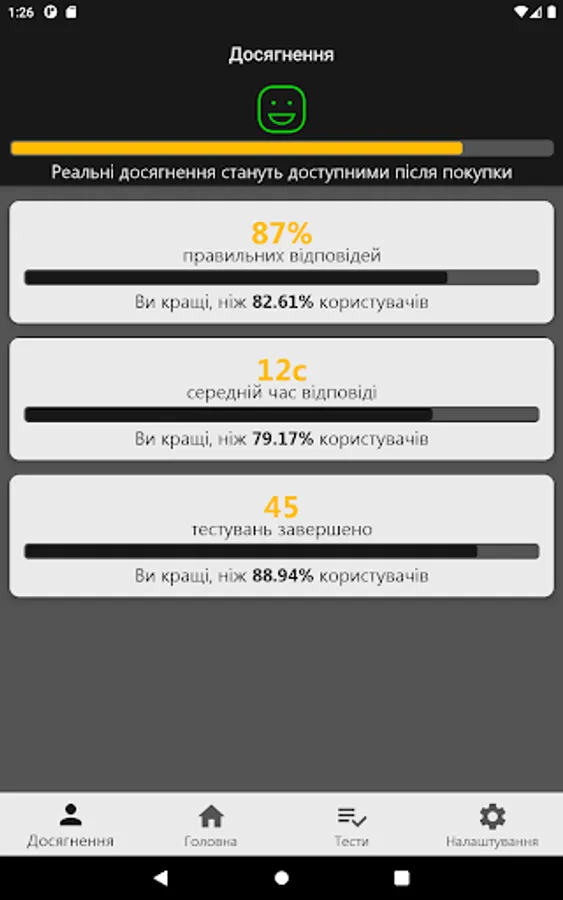 In this application you can not only study the material and take tests, but also see a comparison of your results with the results of other users undergoing testing.