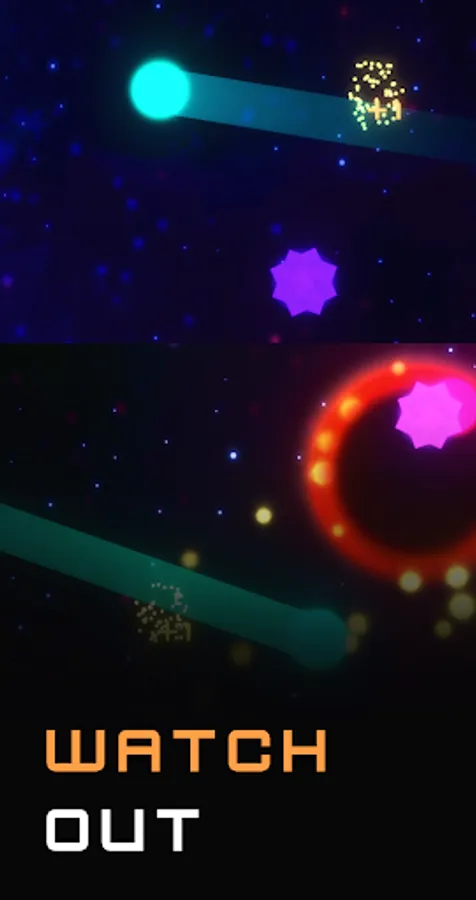 Hold to aim then swipe towards the orange and pink stars to earn points. Time slows down while aiming and hitting stars.