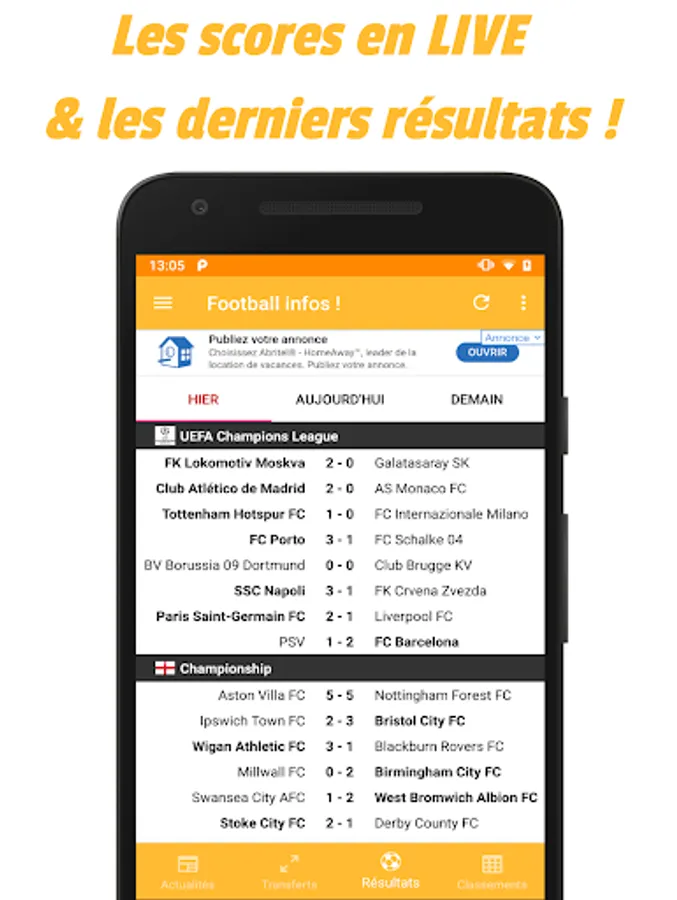 Finally a simple and effective application! All news from Football transfers news, the latest results and rankings concentrated in a single application. The latest results of the matches, highlights, videos, ...