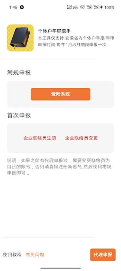 Anhui self-employed annual review declaration assistant. It only supports individual clubs in Anhui Province.