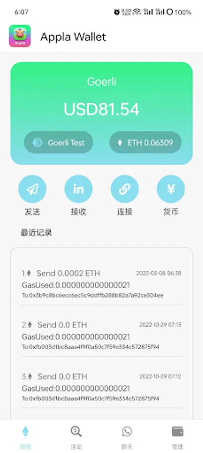 With Appla, you can use your ETH wallet to connect to dApps and complete transactions without worrying about security issues. Appla also provides other functions, such as transfer history and receipts, and viewing the current ETH price, etc.