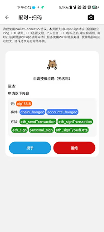 2. Supports walletConnectV2 protocol: provides Dapp Sign authorization, session management, and ETH transactions
