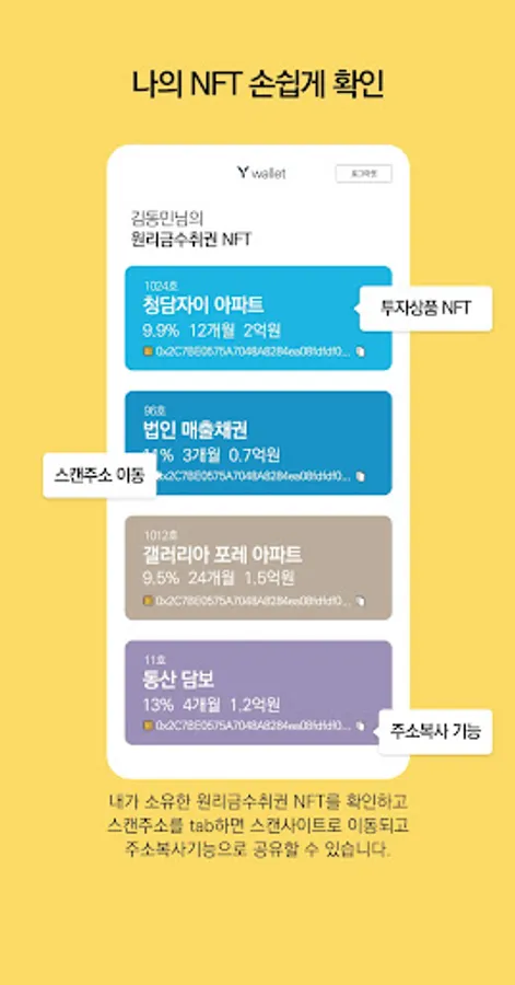 The principal and interest NFTs are used to prove the originality of the principal and interest deeds, and because reproduction is impossible, only the NFT owners are recognized as the true owners of the assets.