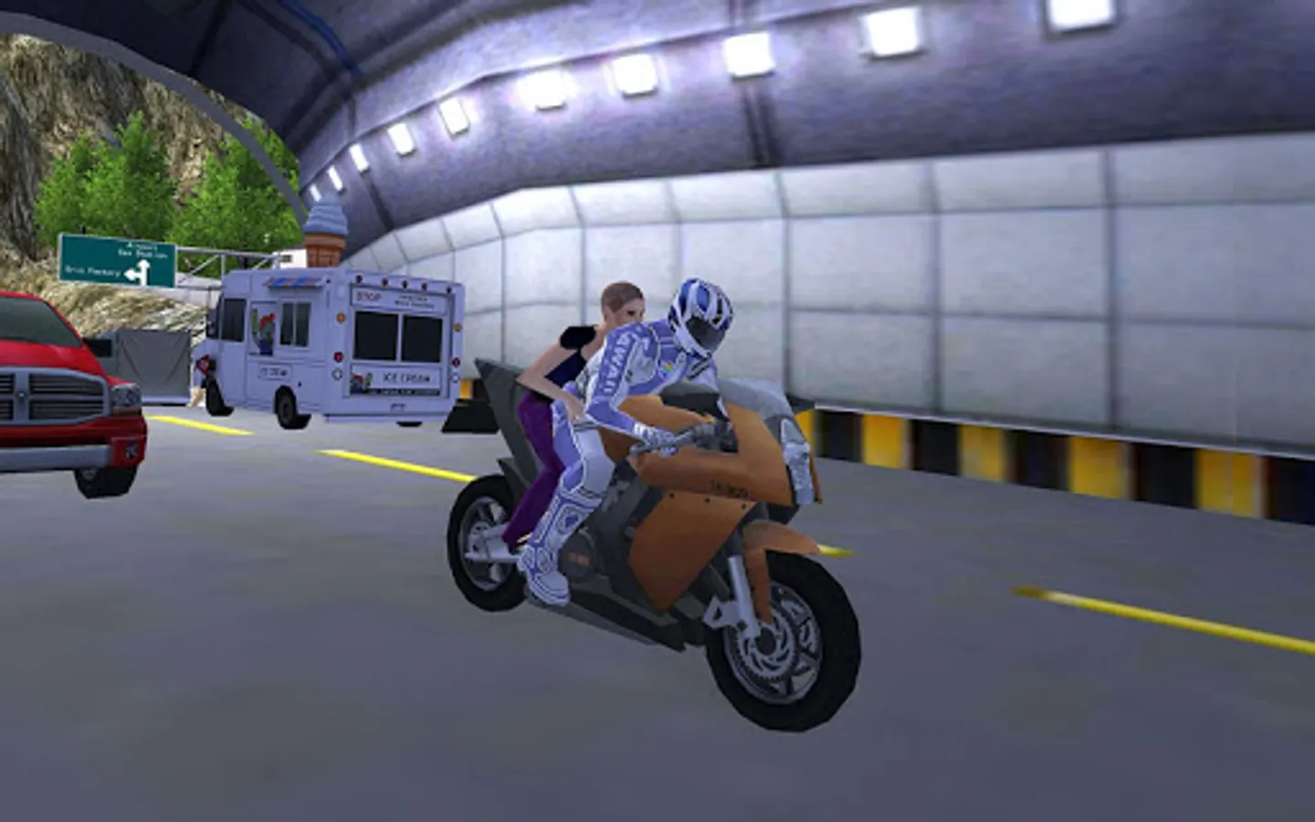 Fast Motorcycle Rider is a motor bike racing game - for the fun of riding fast motorcycle at high speeds and transporting passengers.