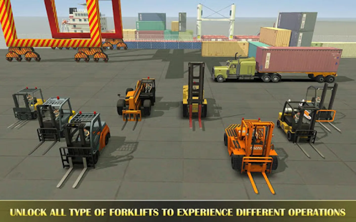 Forklift Simulator Pro is the latest forklift simulation game, where you'll operate different types of forklifts personally and do hundreds of different missions in different forklift work areas, namely, warehouse, cargo ship, plants, building site, port, and container terminal.